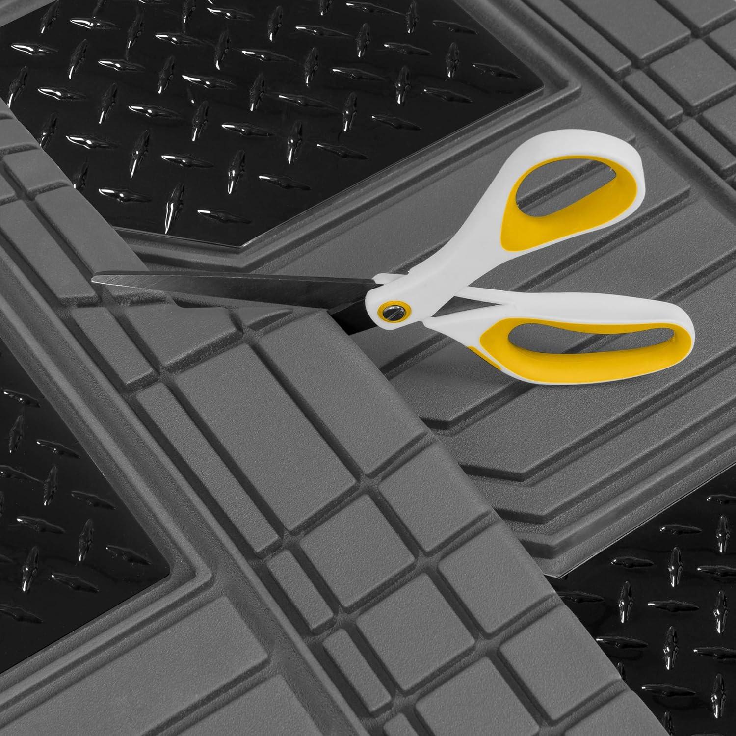 CAT® Diamond Steel Heavy-Duty Rubber Floor Mats & Cargo Trunk Liner for Cars Trucks SUVs Vans Sedans, Gray & Black – Trim-to-Fit, All Weather Deep Dish Automotive Floor Mat for Complete Protection(Black/Silver)