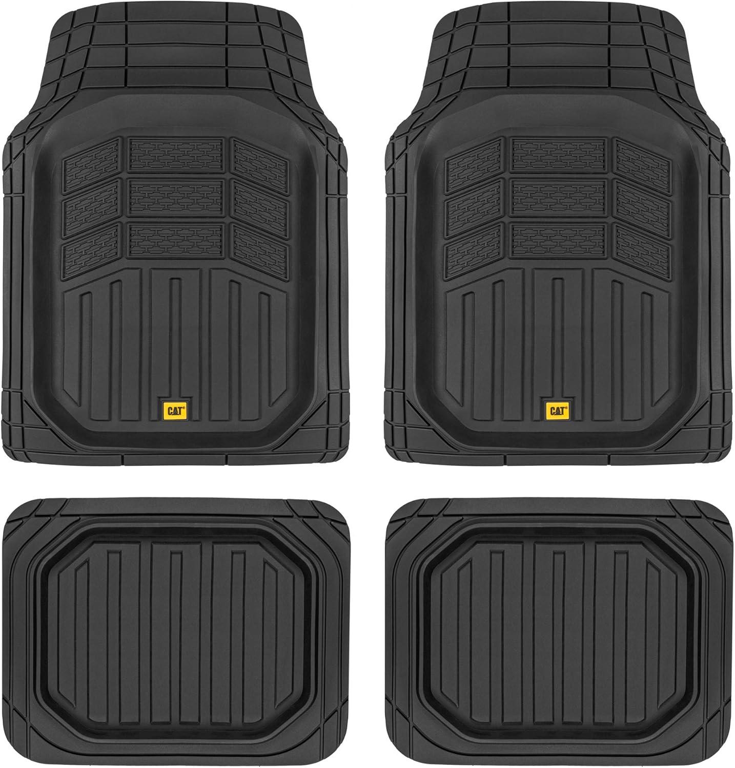 Cat® CAMT-9014 (4-Piece) Heavy Duty Deep Dish Rubber Floor Mats, Trim to Fit for Car Truck SUV & Van, All Weather Total Protection Durable Liners Black(Black)