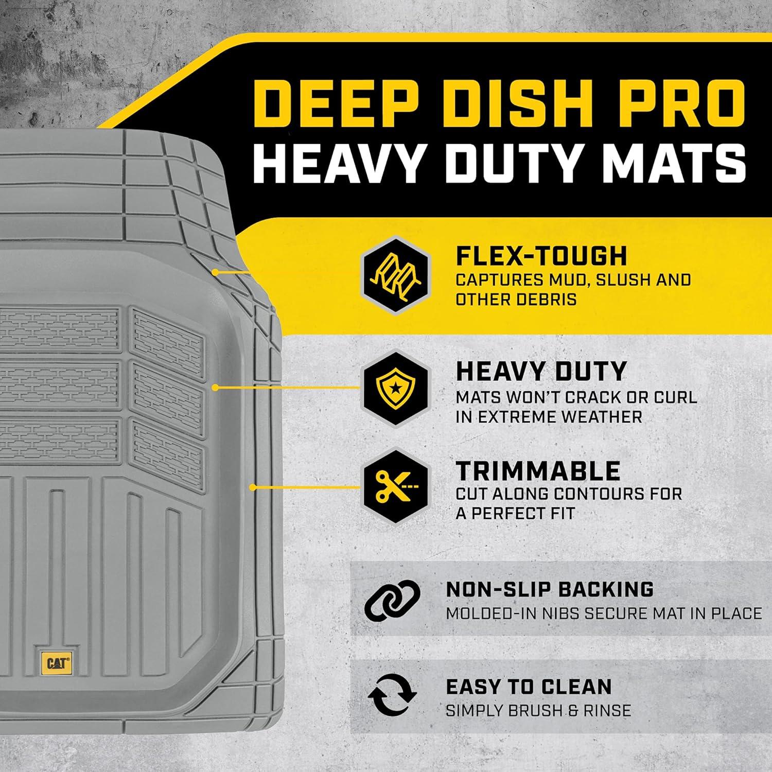 Cat® CAMT-9014 (4-Piece) Heavy Duty Deep Dish Rubber Floor Mats, Trim to Fit for Car Truck SUV & Van, All Weather Total Protection Durable Liners Black(Gray)