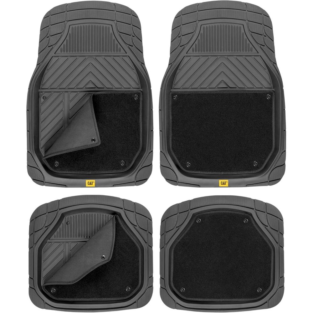CAT® Detachable Deep Dish Car Floor Mats with Removable Carpet Liner – Heavy-Duty All-Weather Protection