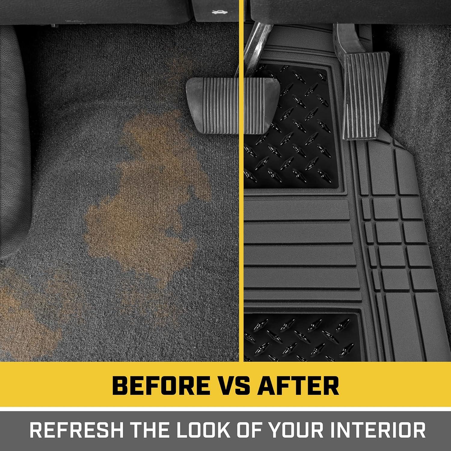 BDK CAT® Heavy Duty All-Weather Tough Rubber Car Floor Mats with Metallic Design