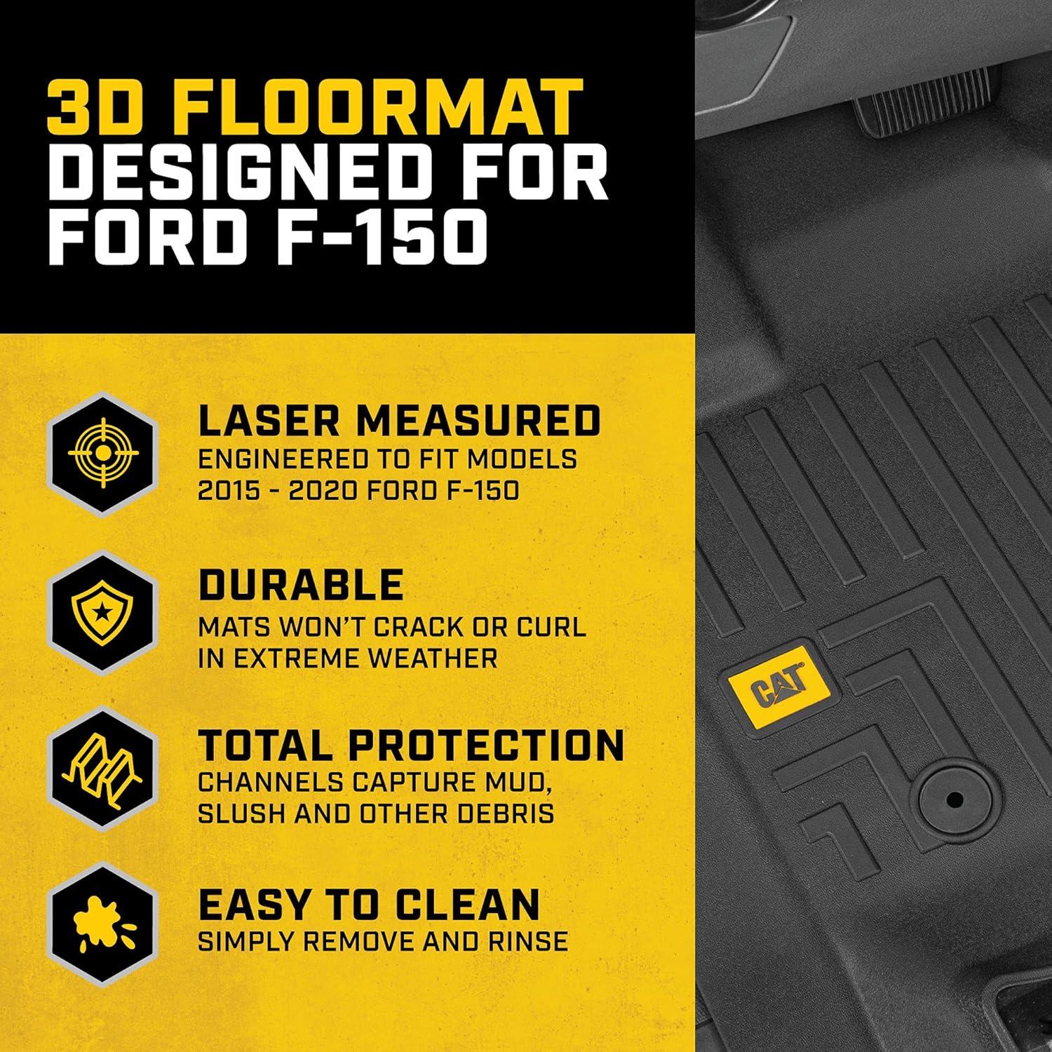 CAT® JustFit™ 3D Floor Mats for Tesla Model 3 2017-2024 – Custom Fit Tesla Model 3 Floor Mats with Extended Coverage Design, Premium Tesla Model 3 Accessories(Ford F-150 SuperCrew Cab (2015-2025))