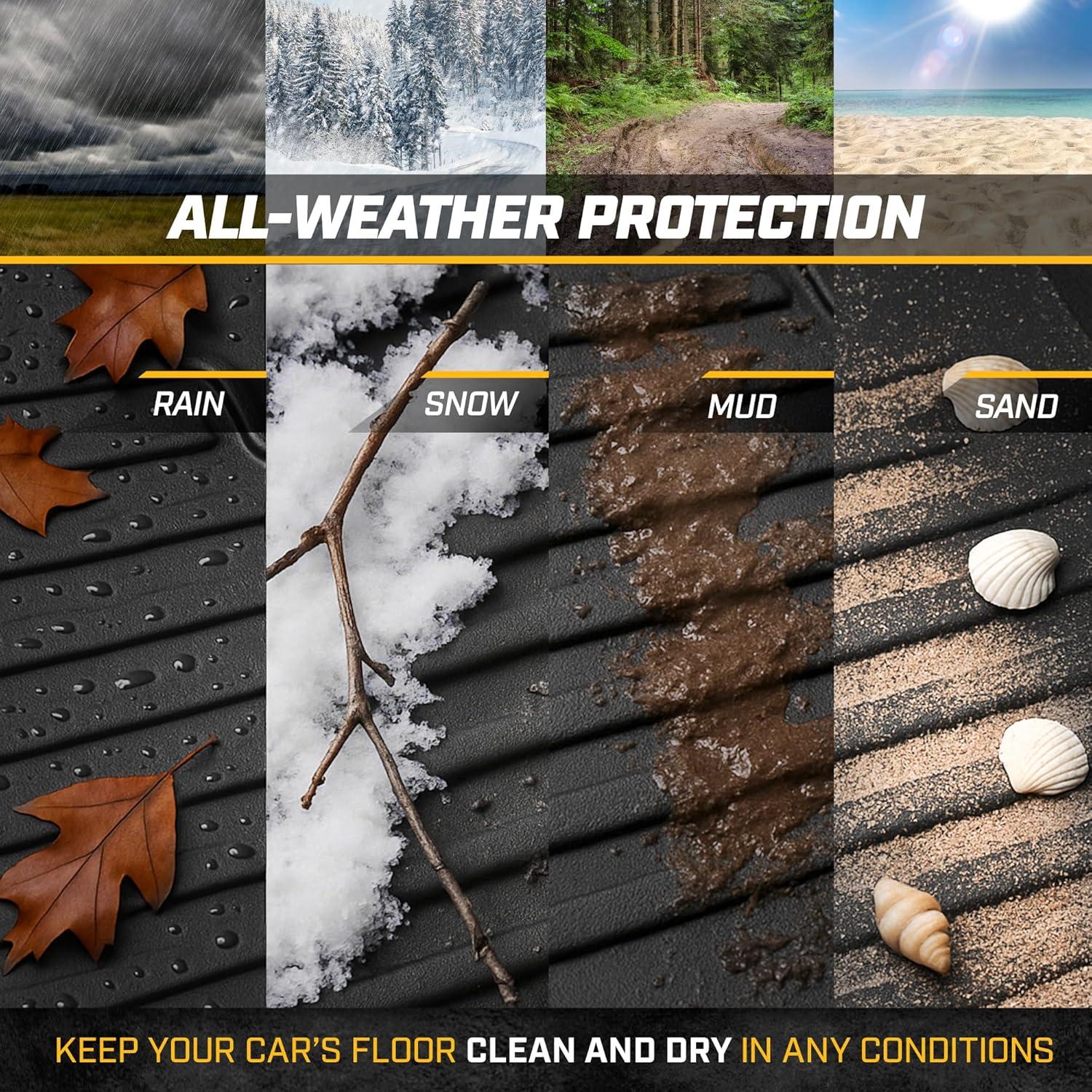 ALL-WEATHER PROTECTION: Built to withstand rain, snow, mud, and spills. Raised edges keep dirt and moisture contained, protecting your vehicle’s interior in any weather.