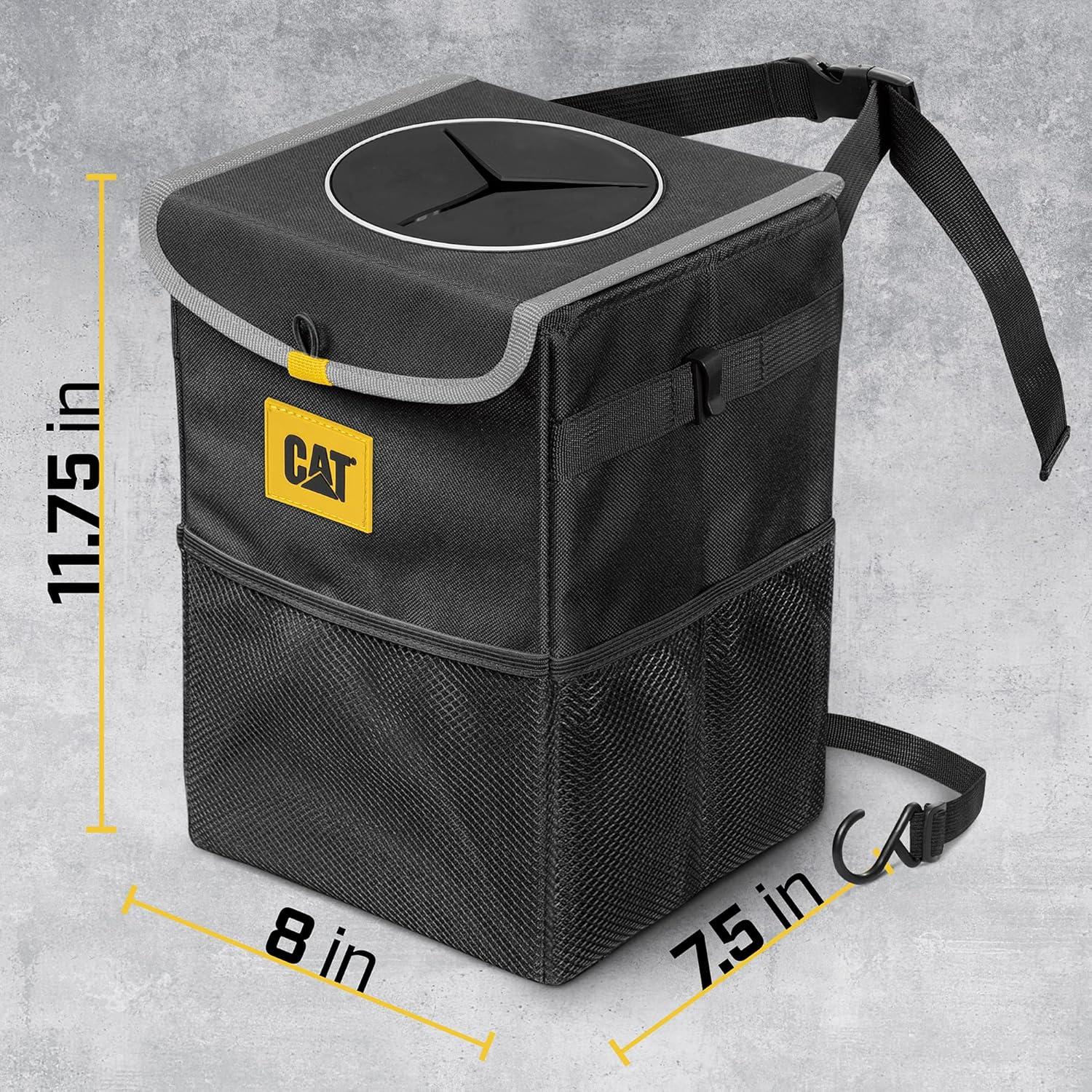 CAT® Premium Car Trash Can with Lid Storage Pockets Waterproof Garbage for Auto Multipurpose Storage Organizer Bin – 100% Leak-Proof, Black