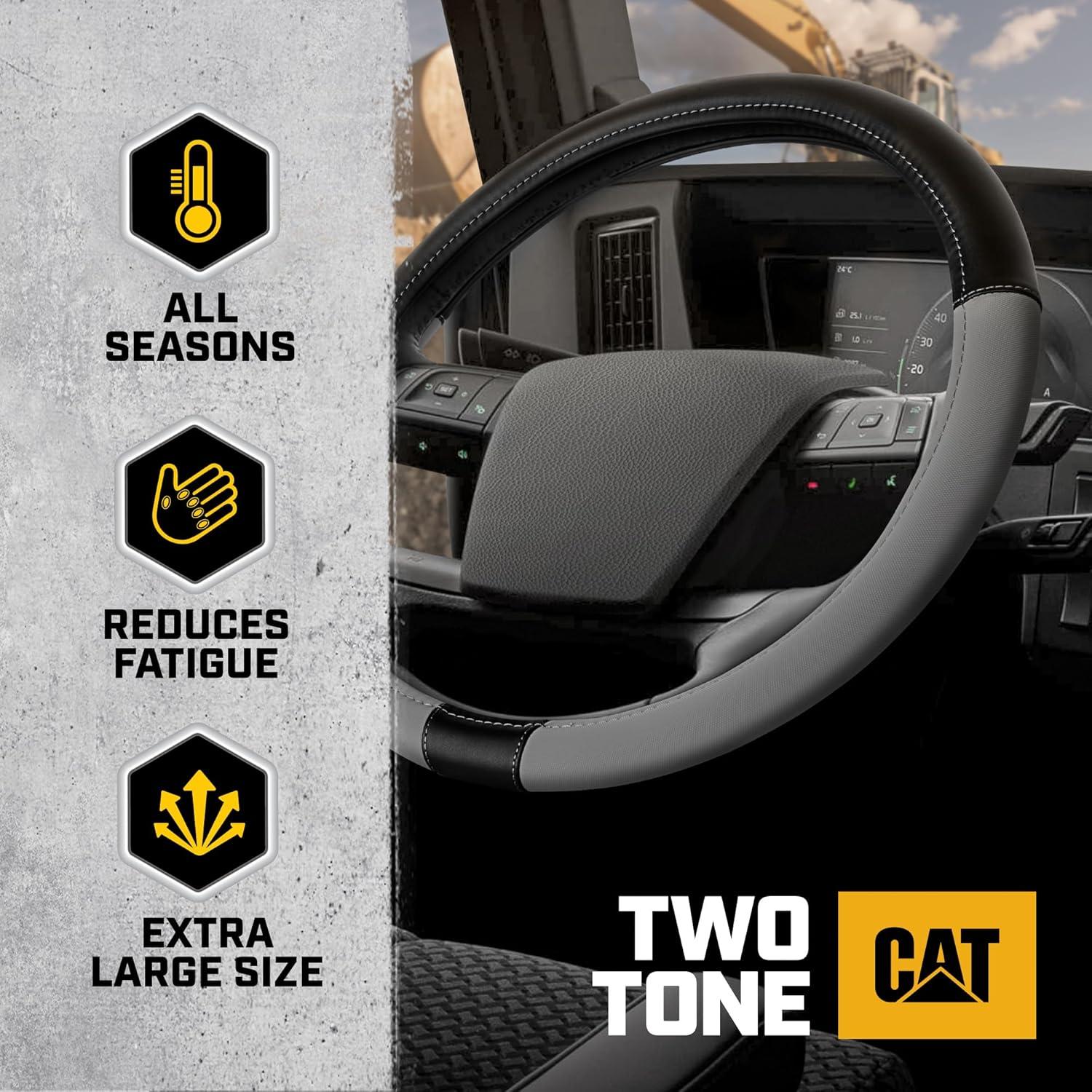 Cat® Steering Wheel Cover – Suede/PU Leather Black/Gray with Chrome Logo, 14.5-15 inch – Durable and Comfortable with Advanced Grip, Car Steering Wheel Cover for Auto Truck Van SUV(Black/Gray BigDrive)
