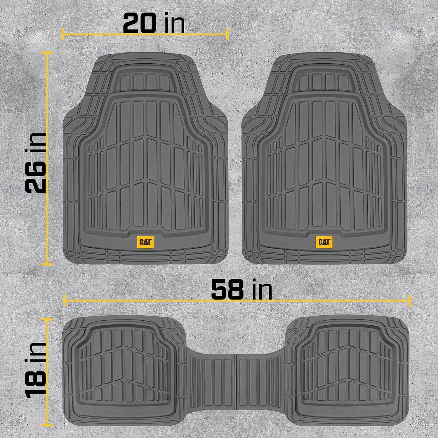 Cat® ToughRide™ Heavy-Duty 3 Piece Rubber All Season Floor Mats for Car Truck Van SUV, Black – Premium Trim to Fit Cars Floor Mat, All Weather Deep Dish Automotive Floor Mats, Total Dirt Protection(Gray)