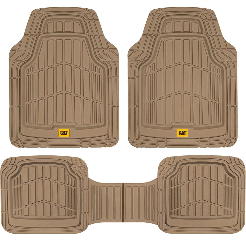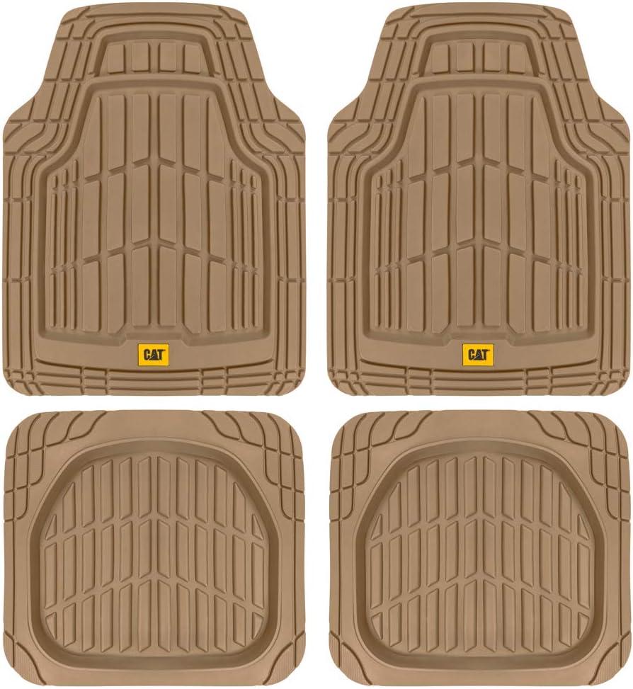 Cat® ToughRide™ Heavy-Duty 3 Piece Rubber All Season Floor Mats for Car Truck Van SUV, Black – Premium Trim to Fit Cars Floor Mat, All Weather Deep Dish Automotive Floor Mats, Total Dirt Protection(Beige)