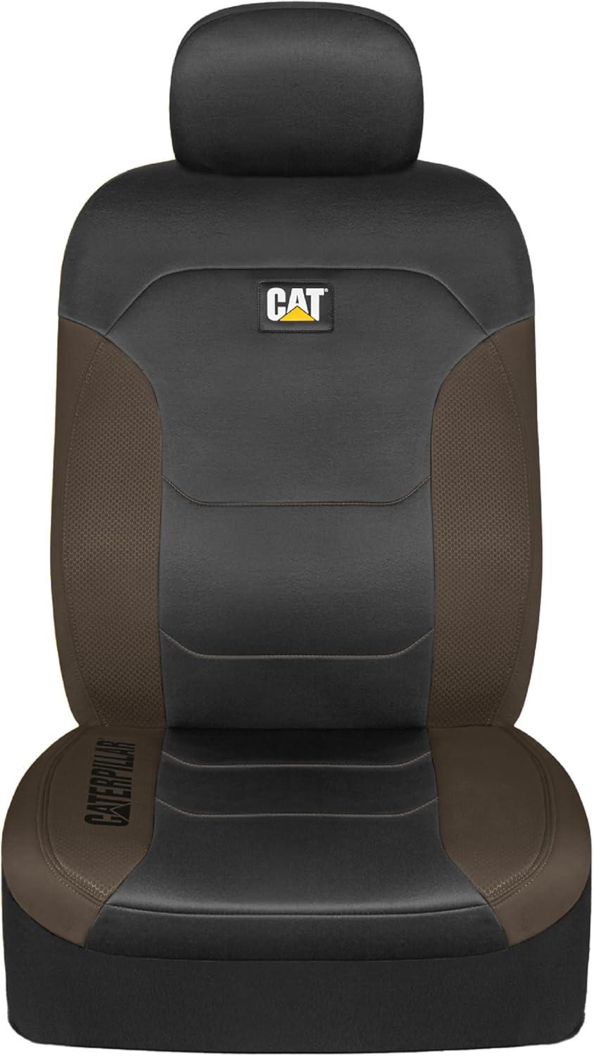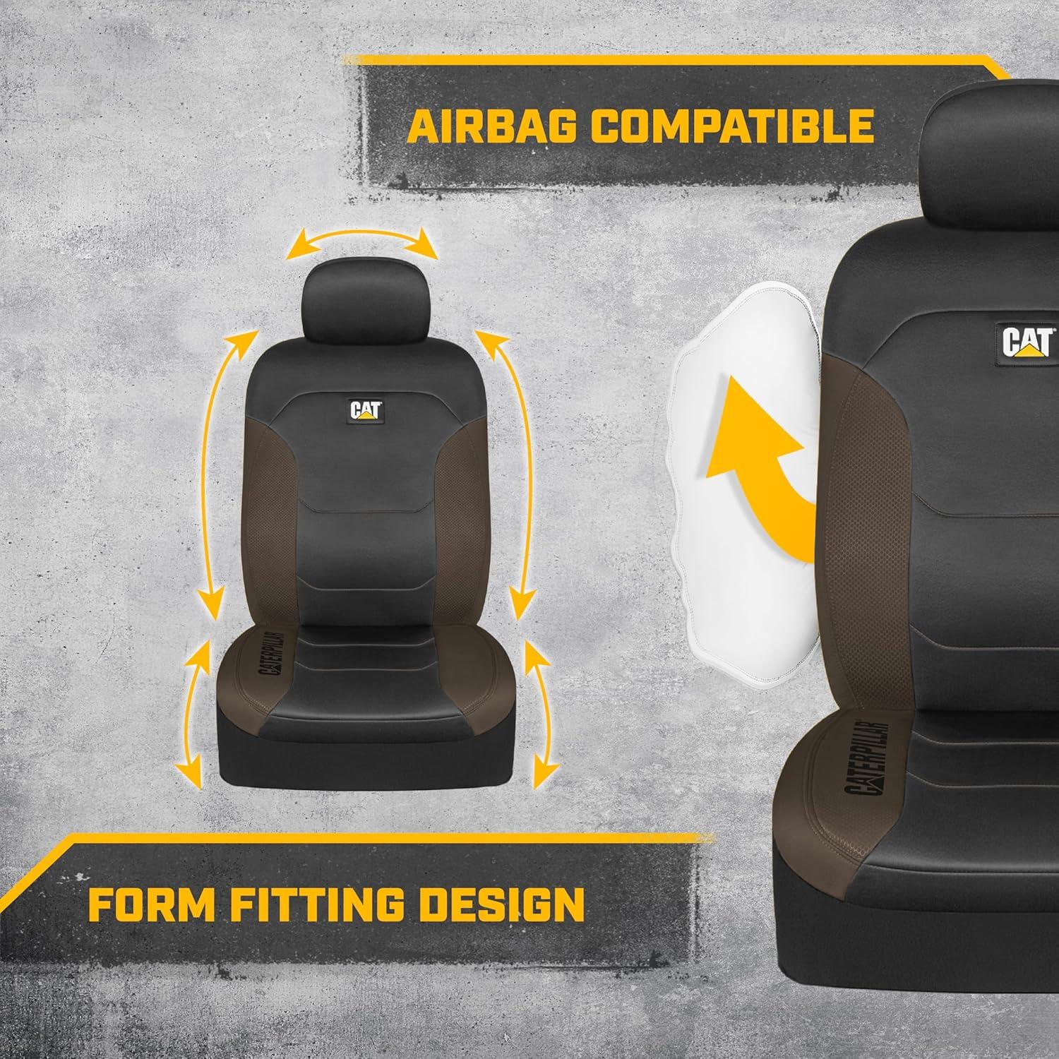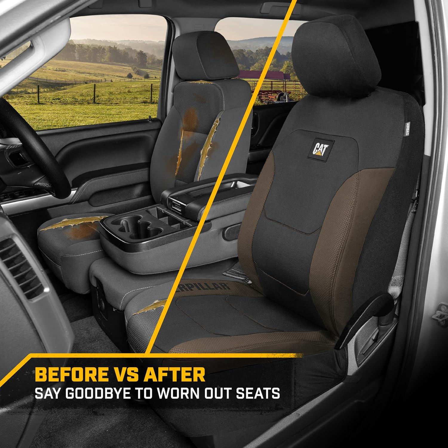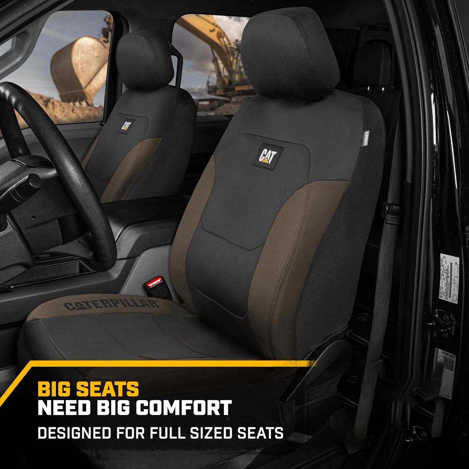 Caterpillar Flexfit Automotive Seat Covers for Cars Trucks and SUVs (Set of 2) – Black Seat Covers for Front Seats, Seat Protectors with Gray Honeycomb Trim, Auto Interior Covers(Dark Beige)