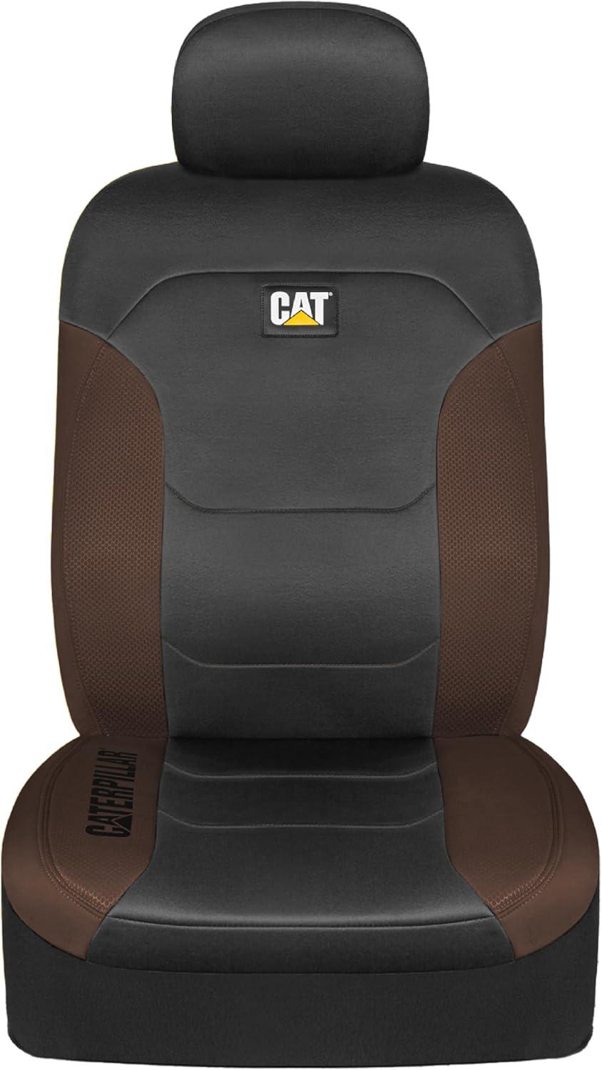 Caterpillar Flexfit Automotive Seat Covers for Cars Trucks and SUVs (Set of 2) – Black Seat Covers for Front Seats, Seat Protectors with Gray Honeycomb Trim, Auto Interior Covers(Front Seat Covers Brown)