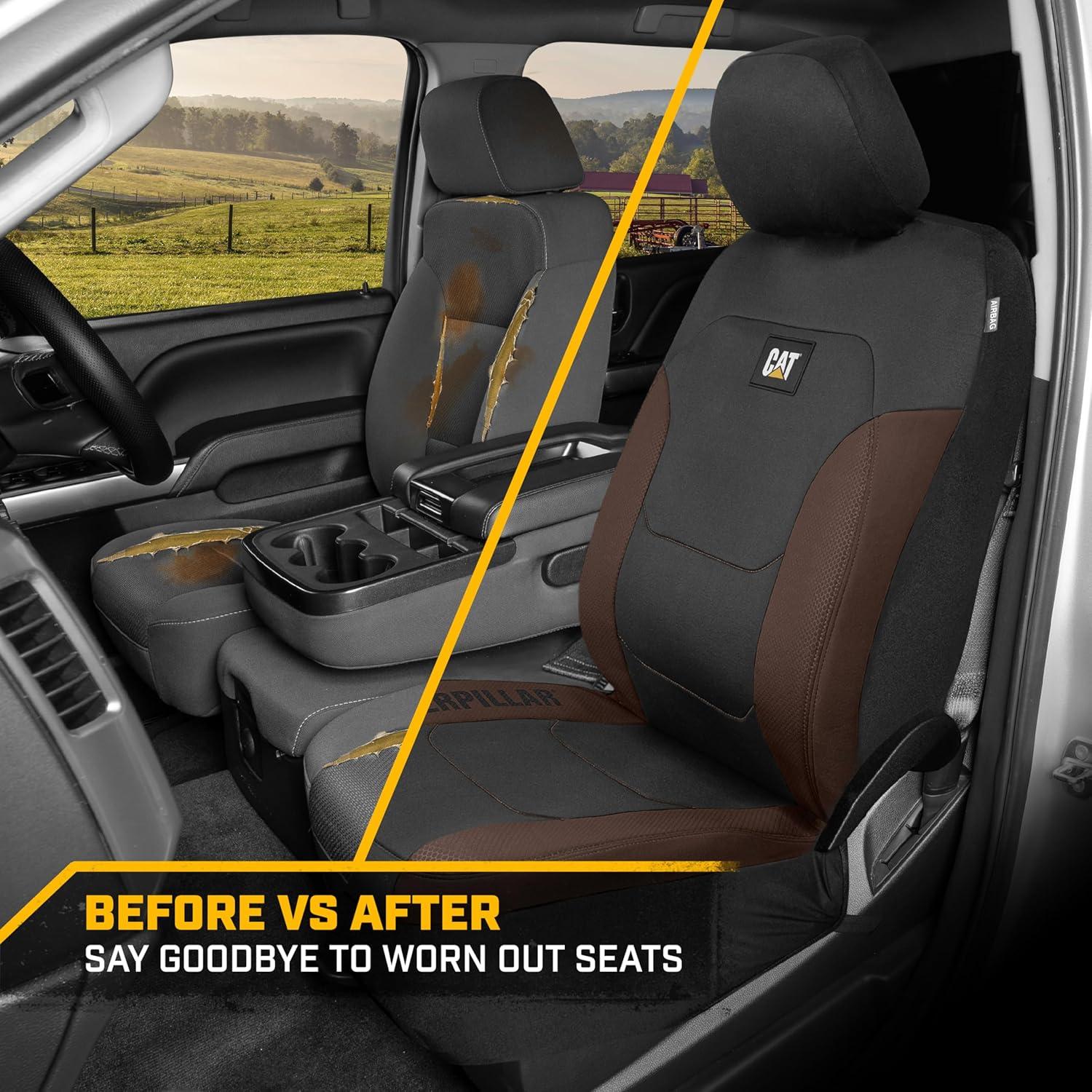 DURABLE PROTECTION: From job sites to daily drives, CAT Car Seat Covers provide reliable, long-lasting defense against wear and tear. Designed to enhance your vehicle's interior, these durable covers protect against spills, sweat, dirt, and normal wear and tear, while offering a sleek, refreshed look by covering up old, worn-out seats.